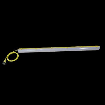 Anti-corrosive 37W LED fitting with opaque diffuser, 110V with integral 3 hour maintained emergency back-up, presented in a 5′ single IP65 polycarbonate body pre-wired with Flori-67/3P 6A 110V plug c/w 2 metres, 1.5mm2, 3C, yellow, LSOH flexible cable.