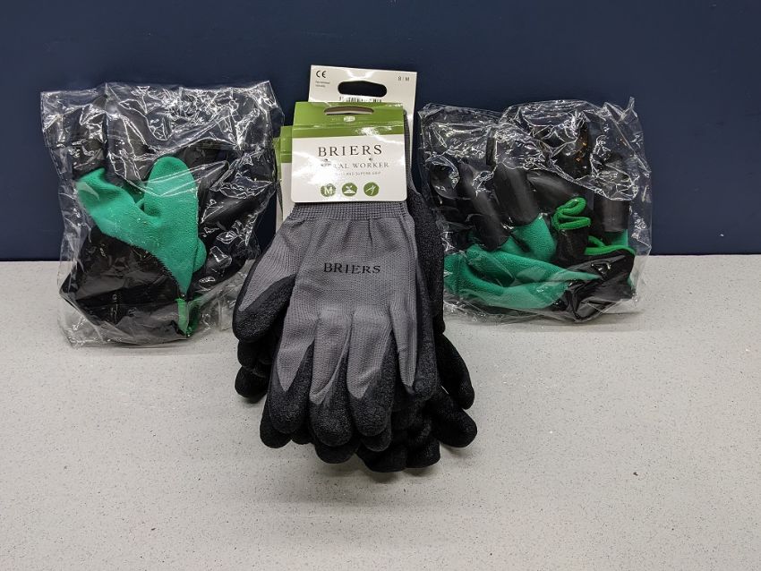 6 pair of gray garden gloves