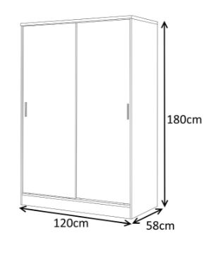 Height: 180cm x Width: 120cm x Depth: 58cm