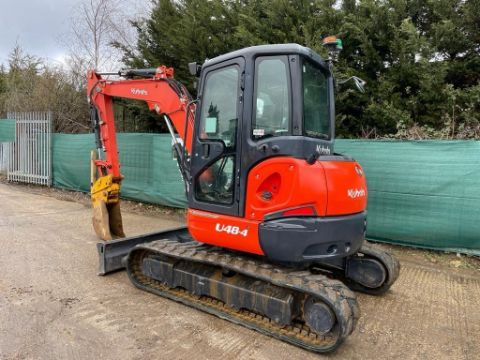 2018 Kubota U48-4 mini digger Piped offset boom blade check valves quick hitch Green and orange site beacons 1,762 hours