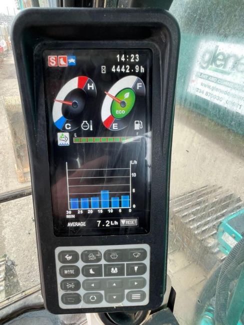 2019 Kobelco SK140SRLC-5 Piped Check valves Quick hitch Boxing ring cab guards Blind spot cameras Green
