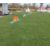 The course is made of fibreglass predominantly. The main parts can be wiped down and the “grass” part can be brushed or hoovered.