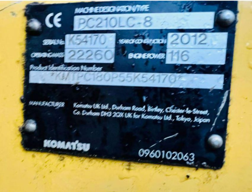 KOMATSU PC210LC-8 TRACKED EXCAVATOR * YEAR 2012 * C/W QUICK HITCH