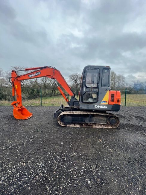 Doosan 5 ton Mini Digger excavator 80% Tracks Fully glazed cabin with heaters , wiper and radio Choice of buckets 2 speed tracking 4 cylinder diesel engine starts instantly Recent battery Piped for 3rd service , Pecker etc Choice of 2 identical machines , came from the same good home. great all round power - |