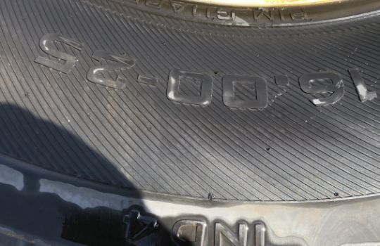 2x unused solid deal 1600-25 wheels and tyres , from Hyster container handler