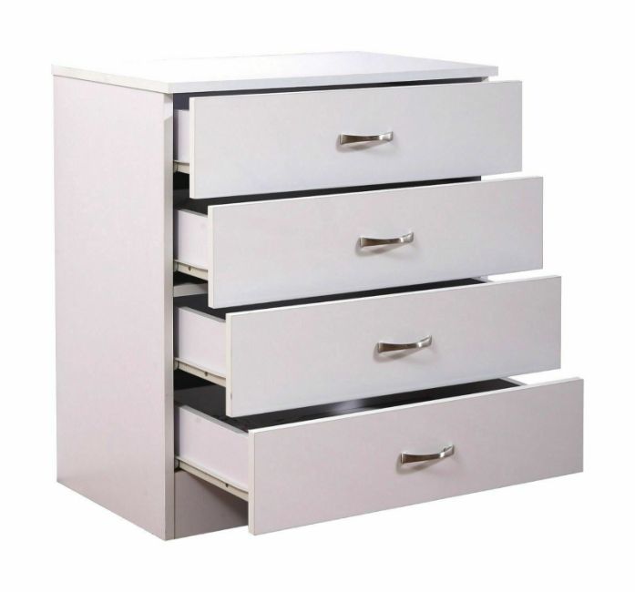 - Chest of 4 drawers - The 4 drawer chest is an excellent addition to our high gloss bedroom furniture range of stylish yet affordable furniture. The 4 drawer chest provides you with the storage space that a wardrobe cannot. The sturdy individual drawers are in one column of 4. They can take a remarkable amount of weight due to the high strength manufactured wood veneer frame. The drawers fit flush and are manufactured to strict conditions which mean they are stable and firm.