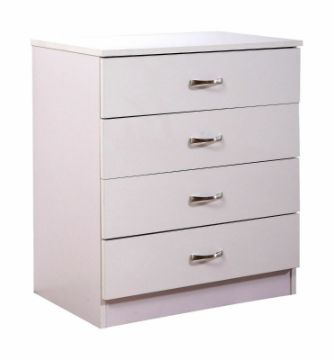 - Chest of 4 drawers - The 4 drawer chest is an excellent addition to our high gloss bedroom furniture range of stylish yet affordable furniture. The 4 drawer chest provides you with the storage space that a wardrobe cannot. The sturdy individual drawers are in one column of 4. They can take a remarkable amount of weight due to the high strength manufactured wood veneer frame. The drawers fit flush and are manufactured to strict conditions which mean they are stable and firm.