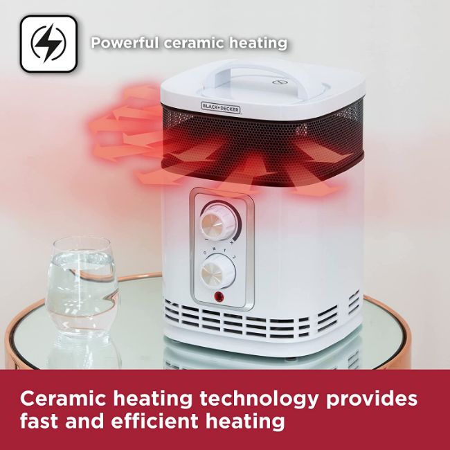 BLACK+DECKER Ceramic Fan Heater, 360° Heating, 2 Heat Setting, 1 Fan Setting, Adjustable Thermostat, 1.5KW, White