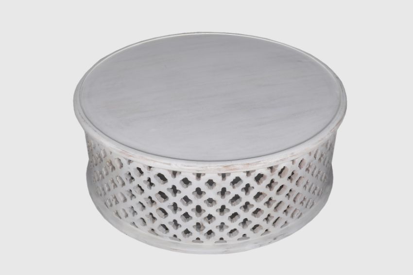 MANGO WOOD FLORAL COFFEE TABLE IN WHITE DISTRESSED - ND0019 X 5