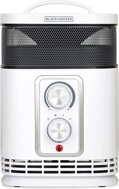 BLACK+DECKER Ceramic Fan Heater, 360° Heating, 2 Heat Setting, 1 Fan Setting, Adjustable Thermostat, 1.5KW, White