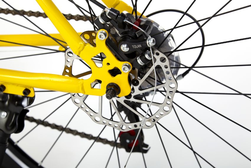 YELLOW STREET BIKE WITH 21 GREAR, BRAKE DISKS, KICK STAND, COOL THIN TYRES