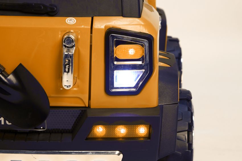 Working lights, aux/music/story player, rocking mode, remote for parental control, doors open, 4 x Shock Absorbers