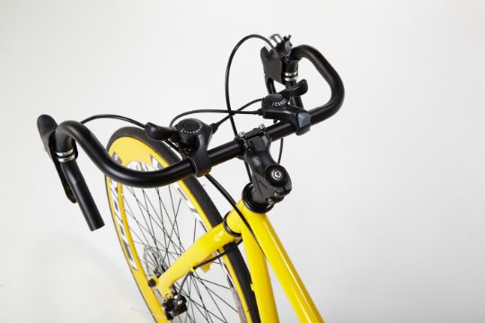 YELLOW STREET BIKE WITH 21 GREAR, BRAKE DISKS, KICK STAND, COOL THIN TYRES