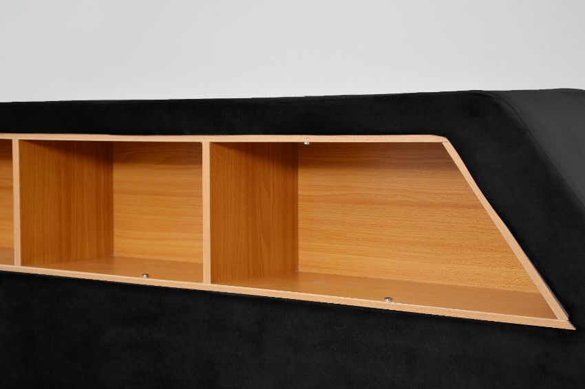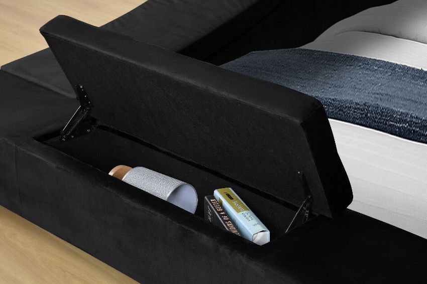 BLACK PLUSH VELVET MULTI FUNCTION ALL-IN-1 PREMIUM LUXURY SMART BED with Massage Function, Bluetooth Speakers, Table, Light, Storage, Safe Cabinet etc