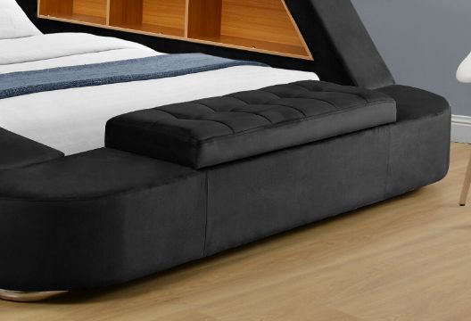 BLACK PLUSH VELVET MULTI FUNCTION ALL-IN-1 PREMIUM LUXURY SMART BED with Massage Function, Bluetooth Speakers, Table, Light, Storage, Safe Cabinet etc