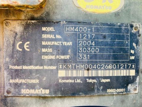 KOMATSU HM400-1 6X6 ARTICULATED DUMP TRUCK C/W REVERSE CAMERA