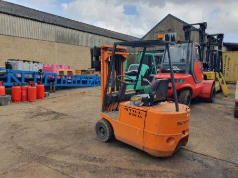 A very compact 3 wheel electric. 1500kg capacity. 4220mm lift height. Container stuffing mast. triplex mast. puncture proof tyres. sideshift fitted. hour meter reads at 809 ( not sure if that's correct or not).