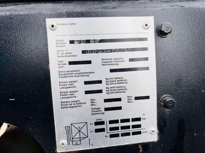 NISSAN FD45 DIESEL FORKLIFT * 4.5 TON LIFTING CAPACITY * C/W PALLLET TINES