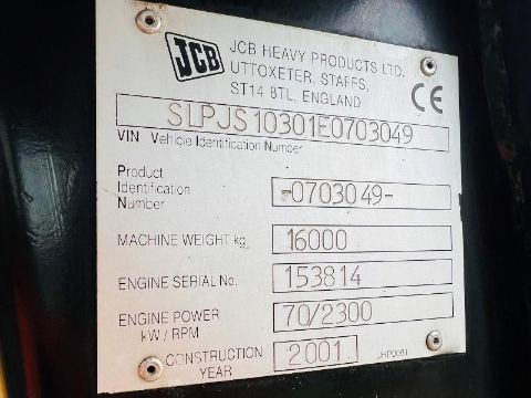JCB JS160 TRACKED EXCAVATOR C/W QUICK HITCH