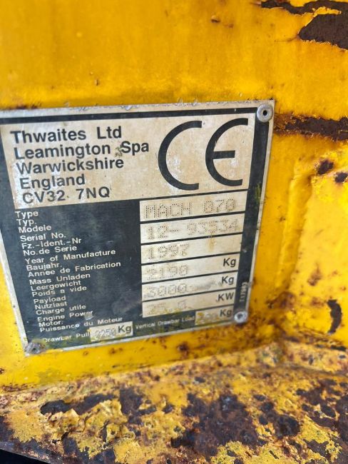 Thwaites alldrive 7000 Mach070 3 Ton dumper - Year: 1997 -  Perkins 4 cylinder Diesel engine
