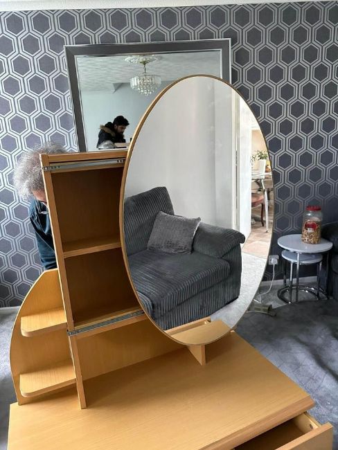 It’s brand new with original packaging/ comes boxed. Dressing table with mirror and stool.