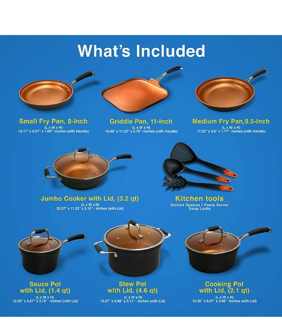 The ceramic cookware sets have 3 layers of copper with a hard-anodized and heat-resistant lacquer exterior. The solid cast iron design is sturdy and reliable, so you can use this scratch resistant pots for many years to come