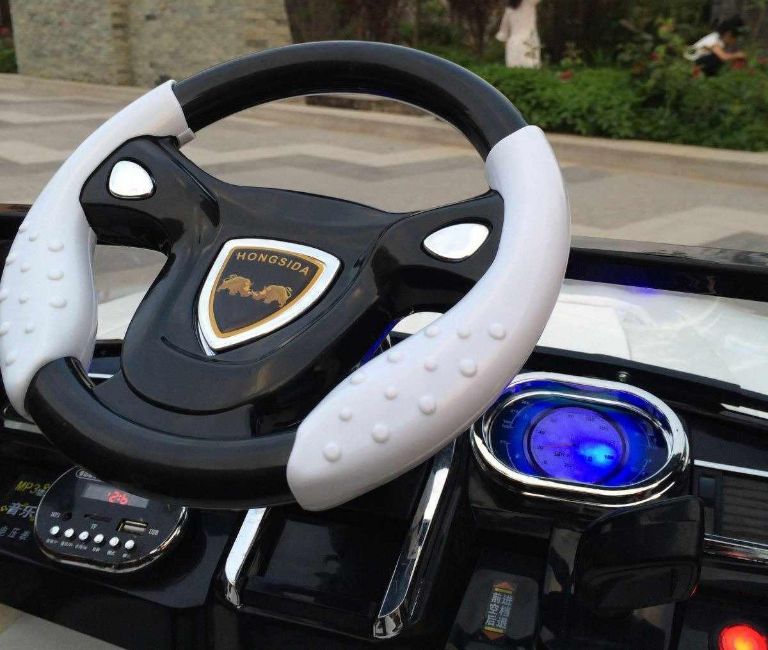 Working lights, aux/music/story player, rocking mode, remote for parental control, doors open, 4 x Shock Absorbers