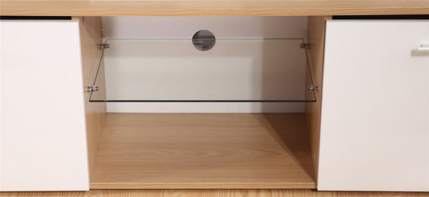 BRAND NEW boxed 160CM has WHITE Gloss fronts ON OAK wood effect frame TV STAND (TV32)