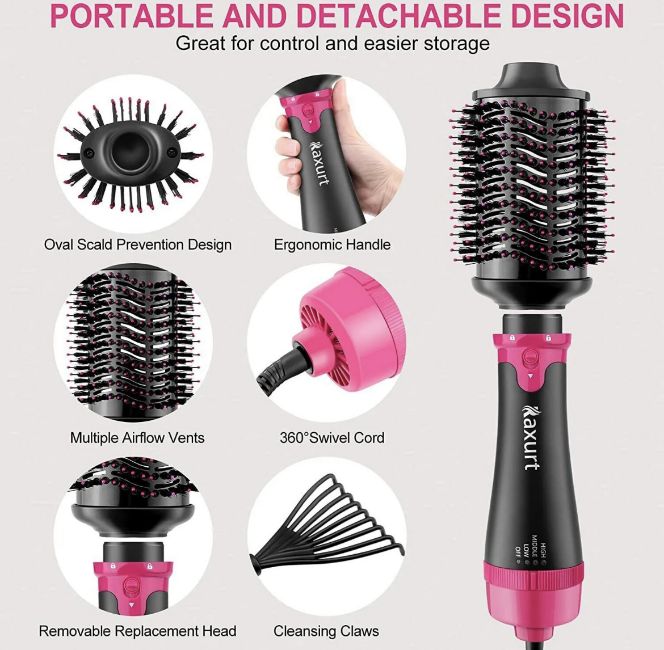 Raxurt Hair Dryer Brush 2 in 1 Hot Air Brush Ionic Technology Multifunctional Hair Dryer Brush: The hot air styling brush is a perfect combination of hair dryer, comb, curling iron, straightener and massage brush. The hair dryer brush can make your hair fluffy easily, perfect for dry or wet hair and all hair types. |