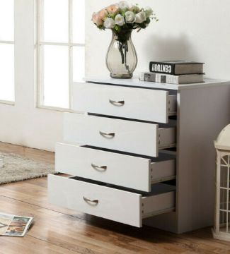 1. Chest of 4 drawers - The 4 drawer chest is an excellent addition to our high gloss bedroom furniture range of stylish yet affordable furniture. The 4 drawer chest provides you with the storage space that a wardrobe cannot. The sturdy individual drawers are in one column of 4. They can take a remarkable amount of weight due to the high strength manufactured wood veneer frame. The drawers fit flush and are manufactured to strict conditions which mean they are stable and firm.