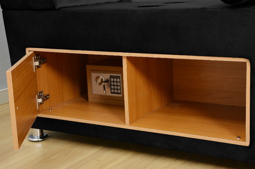 BLACK PLUSH VELVET MULTI FUNCTION ALL-IN-1 PREMIUM LUXURY SMART BED with Massage Function, Bluetooth Speakers, Table, Light, Storage, Safe Cabinet etc