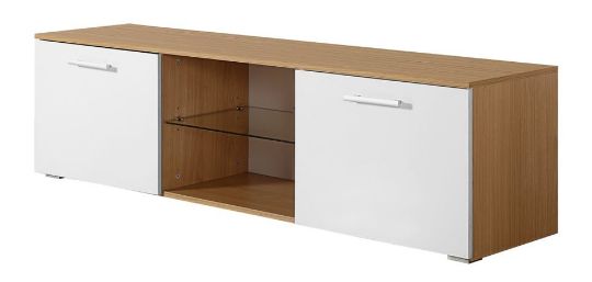 BRAND NEW boxed 160CM has WHITE Gloss fronts ON OAK wood effect frame TV STAND (TV32)