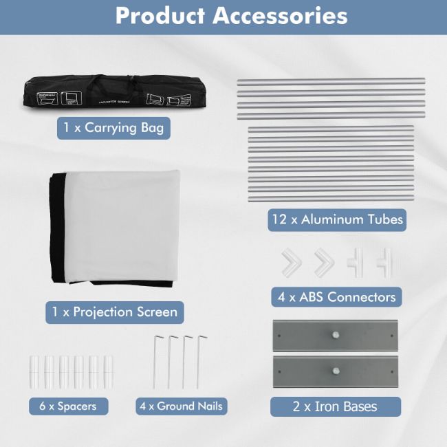 Our foldable screen with stand can meet your different entertainment needs. You can use it for teaching,meeting, watching movie,playing game, watching sport events, etc. 120 inches large screen and 160° wide viewing angle ensure view with enhanced clarity. Besides, wrinkle-resistant and washable polyester material allows you to fold and clean the screen with convenience. Lightweight and portable bag help you to easily carry it from one place to another place. Thus, you can enjoy the movie wherever you like. Additionally, it’s super easy to assemble.