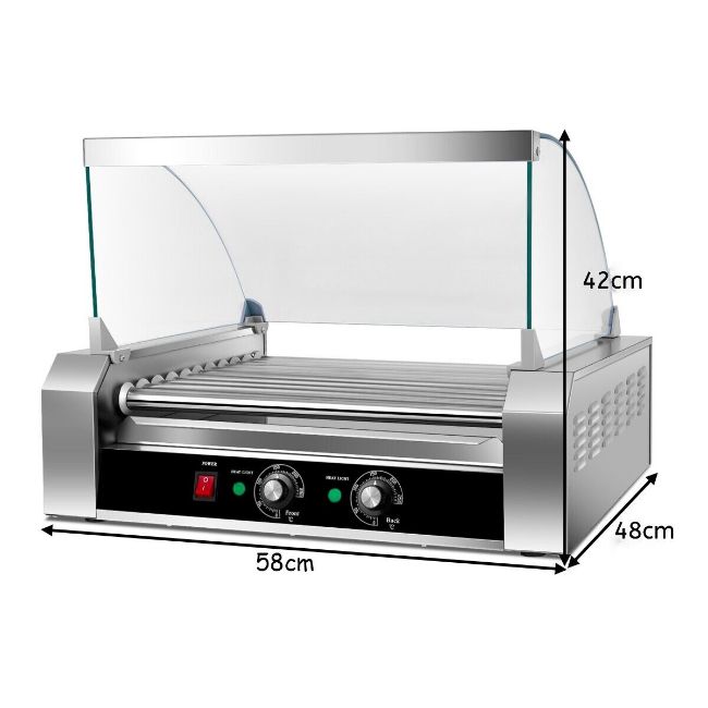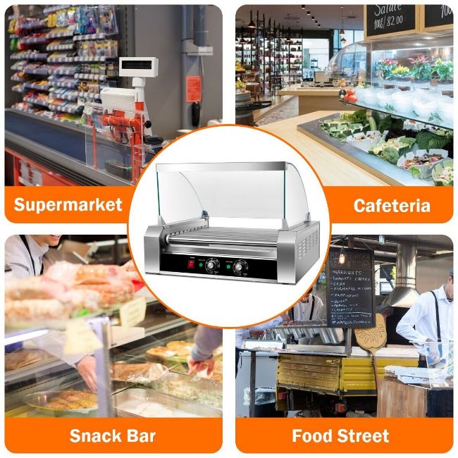Our hot dog roller grill makes tasty, evenly-cooked hot dogs or sausages easier than ever. Made from high-quality stainless steel and commercial-grade construction, The Hot Dog Roller boasts 11 non-stick rollers grill 30 hot dogs or sausages at one time. The stainless steel rollers continuously rotate to evenly cook hot dogs to get the just-right finish, while the adjustable heat settings make cooking hot dogs simple and quick, which is perfect for taking snack time or meal time to the next level. Take this concession-style hot dog roller machine, and it works like a chef to impress your guests or friends at the gathering events!