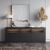 The TV stand has two levels. A well-designed base equipped with 2 drawers and 2 cabinets followed by three grids designed to showcase an electronic device or DVD. It is all put together with tempered glass (LED is included) to add a modern look.