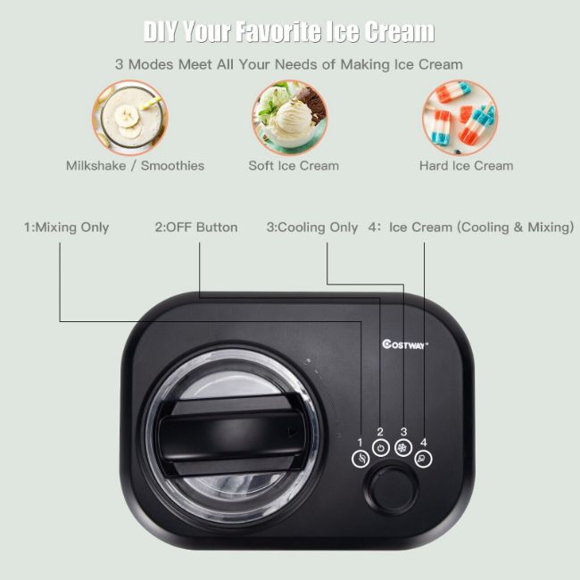This ice cream machine is designed with 3 modes, which can be chosen kinds of ice cream according to your preferences. It is easy to choose operation mode by adjusting the knob. The keep cooling function maintaining 60 minutes to keep fresh taste and perfect texture of ice cream. There will be 10 short beeps to remind you of the finish time. Equipped with compressor self-protection and motor self-protection, this machine provides you with a long service time. Since all parts are removable, the daily cleaning is easy to finish. You can add any favorite fruits or candies to create flavorful ice cream to enjoy your leisure time.