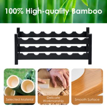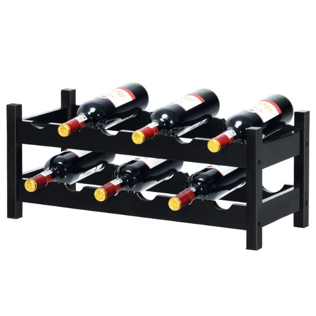 Do you need a rack to show the wine that you love? Our wine rack keeps wine bottle place on the same position well-organized. Apart from well painted surface, it is crafted of premium natural bamboo for reinforcement. 2-tier wine shelf is capable of holding up to 12 wine bottles in a horizontal way to minimize the oxidation degree. Featuring arc slots for stability, the wine rack fits different kinds of wine bottles to prevent shaking or wobbling. Besides, compact size contributes to interior improvement of your home which is suitable for kitchen, pub, pantry and wine cellar.