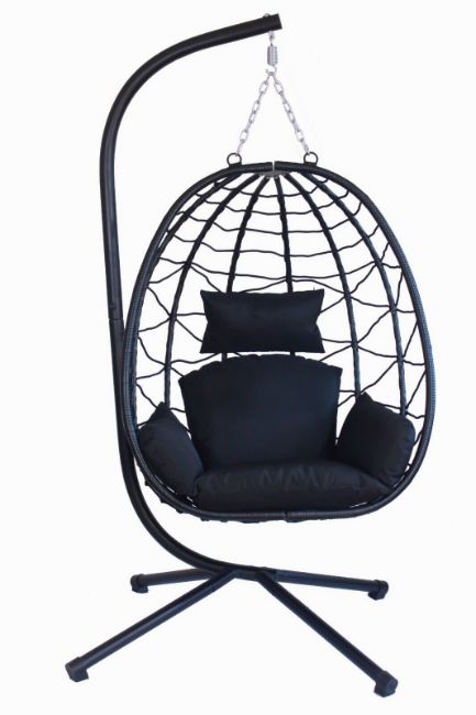 This amazing, quality egg chair helps you lounge in style, allowing you to rock back and forth. Featuring a woven rope design on a sturdy steel frame comes with padded cushion seats for added comfort.