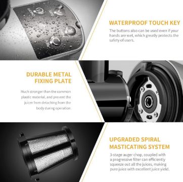 - 【Innovative and Upgrade Design】: 7 segment sprial masticating, coupled with a progressive high density filter can efficiently make pure juice with excellent juice yield. And the anti-slip feet prevent slipping and dampen vibrations when working.