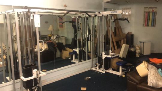 unsure on the amount of workouts this can produce but its a cable crossover, with benches, seats, pull downs, row and more