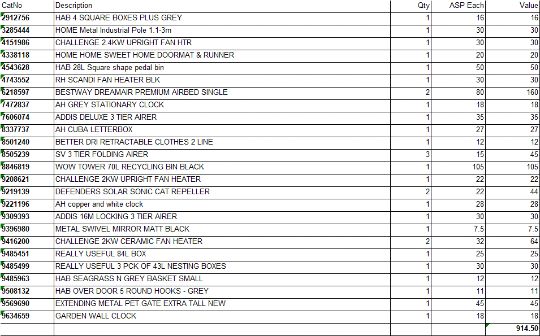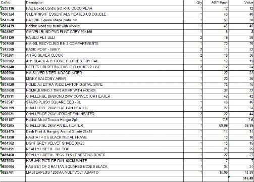 EAMA have received these directly from Argos so you can rest assured that nothing has ben removed from the pallets prior to listing them - EAMA have over 300 pallets in stock and therefore a pallet will be chosen at random from the homeware category.