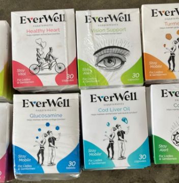Pallet contains a mix of vitamins shown below 360 packs of each (dates next to each type)