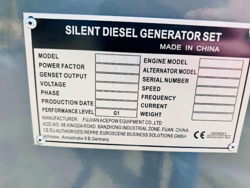 BRAND NEW KAWAKENI KK50 50KVA SILENT RUN GENERATOR *YEAR 2023