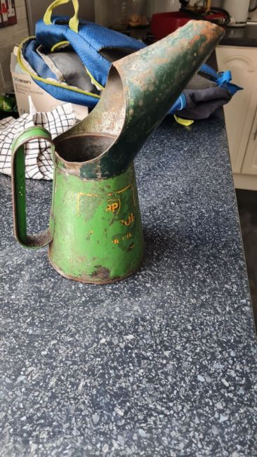 AUTOMOTIVE LOT52 VINTAGE BP ENERGOL OIL CAN / JUG. 1958 LEAD STAMPED