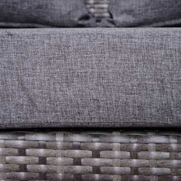 - Makes those special times spent with friends in your garden better than ever before, thanks to this five-piece garden sofa set from Outsunny. Using hand-woven PE rattan. Curved in shape for a more intimate and cosy feeling, each seat of the conservatory furniture is with a thick foam seat cushion with a washable cover to ensure you can lounge comfortably, with back cushions for support. Finished with legs for balance and a matching coffee table. Effortless style whilst you sit under the sun.