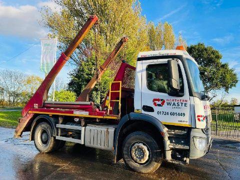 MERCEDES AROCS 4X2 SKIP LORRY * YEAR 2016 * C/W HYVA LIFT & SUPPORT LEGS