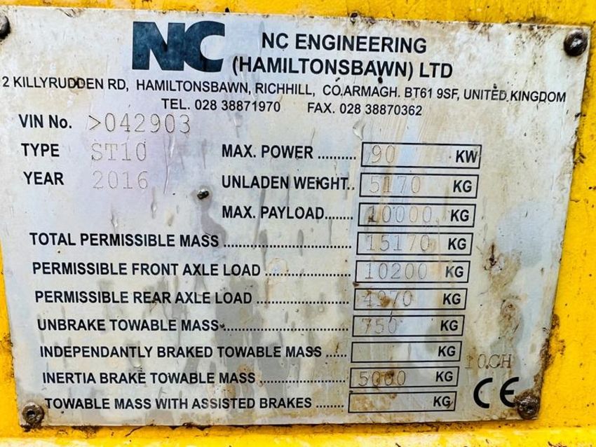 NC ENGINNERING ST10 4WD DUMPER *YEAR 2016 , 2358 HOURS* C/W FULLY GLAZED CABIN