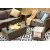 Comprised of a three-seater sofa, a two-seater sofa, two armchairs, a stool, and a toughened glass-topped coffee table.