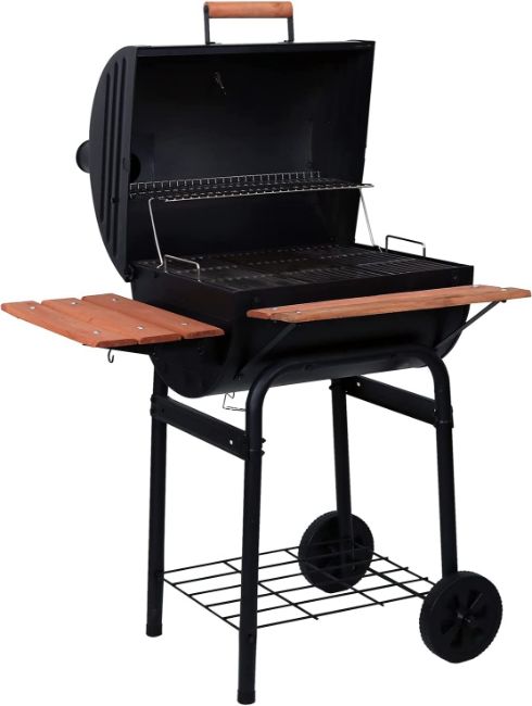 This Char-Griller Wrangler Barbecue is a great all-rounder with metal shelves, temperature gauge and smoke stack/chimney.