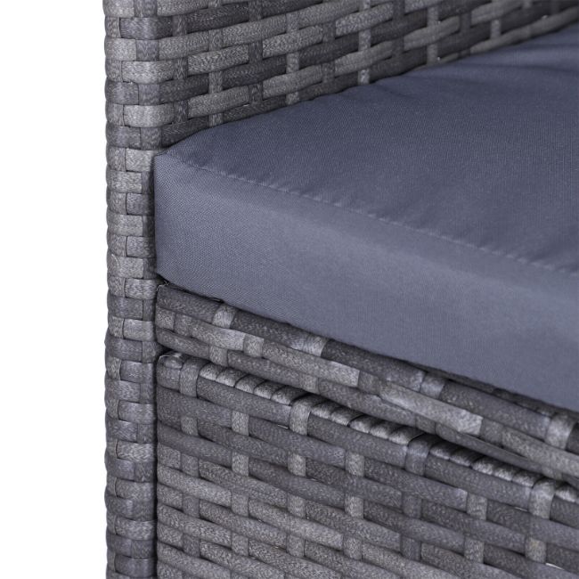 • COMFORTABLE AND SUPPORTIVE: Two padded seat cushions of the rattan bench for you to sit peacefully, with a high back and armrests to encourage correct posture. Cushion covers are fire-retardant and can be spot cleaned easily. MIDDLE TABLE: Ideal for keeping drinks, food, books etc. close, with a sleek and black tempered glass top which is easy to clean and maintain;